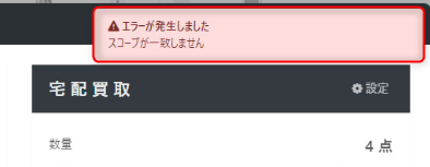 上記の場合【宅配買取】の『着荷済みとしてマーク』をクリックされますと、『商品受領時』に設定しているメッセージテンプレートの内容が送信されますが、スコープが異なっているためエラーとなります。