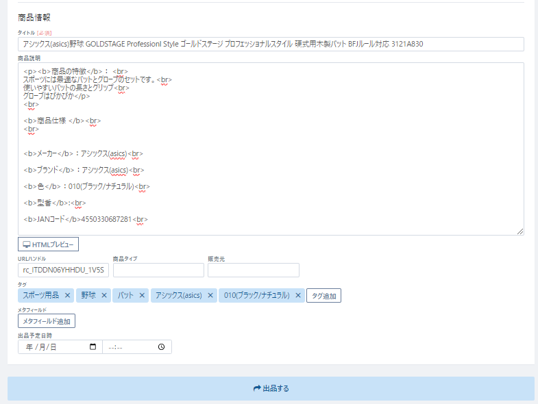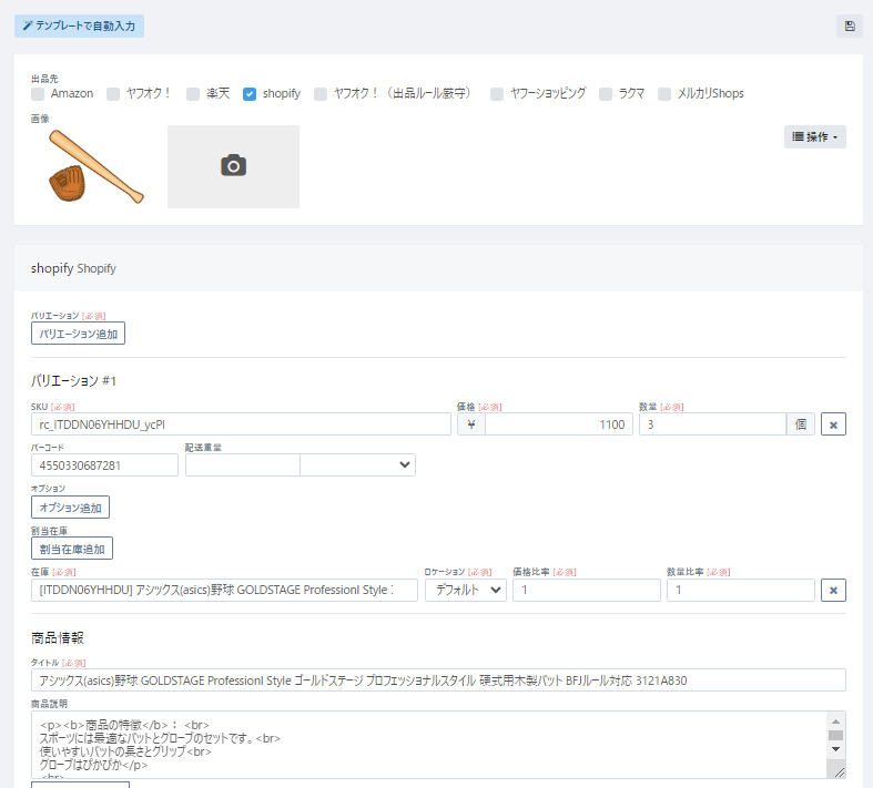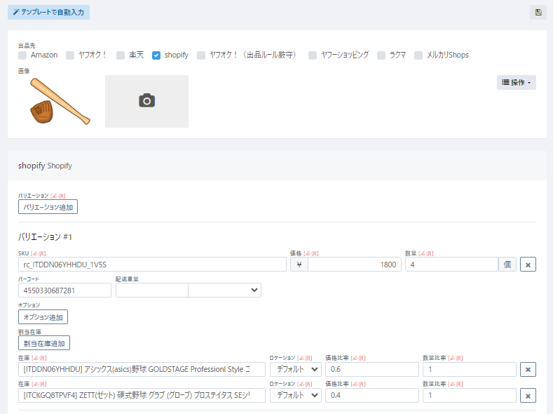 各出品先毎に必要となる出品情報の入力を行います。