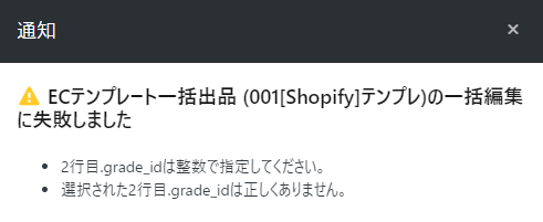 なお、10点中1点の出品に失敗した場合、他9点の出品は完了となりますので、出品に失敗した入力行のみ修正を行い、再度インポートを行ってください。