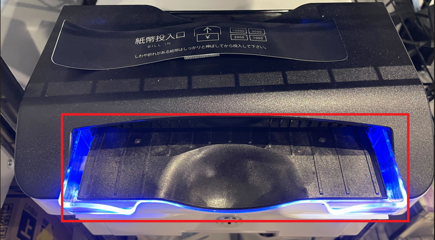 この状態になったことを確認し、紙幣投入口に1,000円札を入金します。