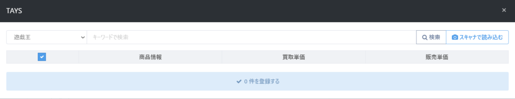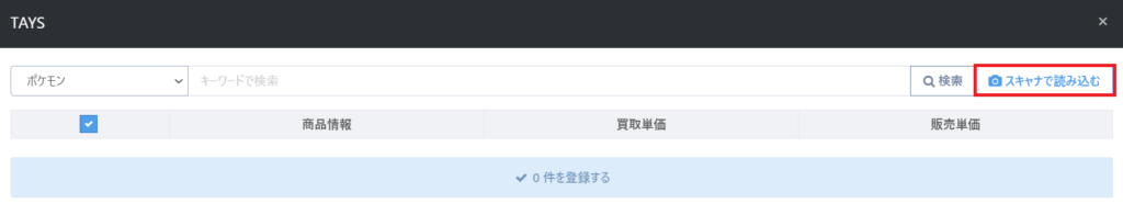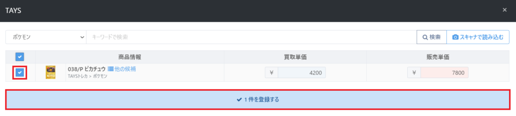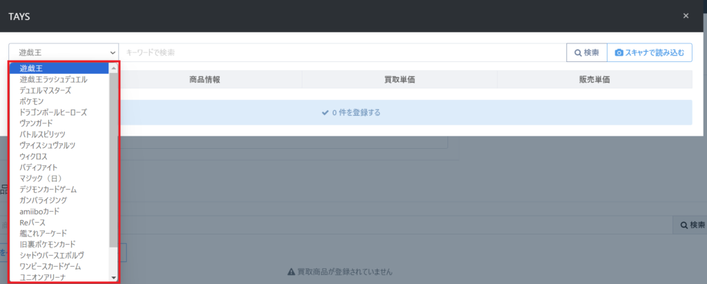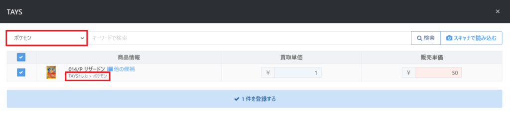 TAYSで買取を行う際に例えば「ポケモン」を選択してカードを登録したとします。