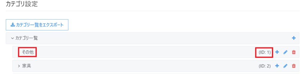 なお、カテゴリ設定でカテゴリIDの1を「その他」以外の名称で設定されている場合は設定されている名称が表示されます。