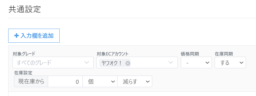 店頭販売やヤフオク以外のECモールで販売した場合、出品が取り下げられるにはRECOREの【EC同期設定】にてヤフオクに対して以下のような設定が必要となります。