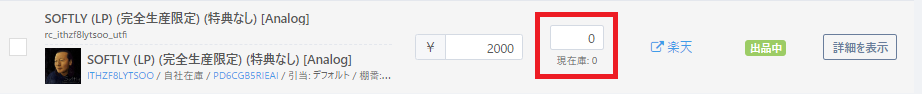 確定後はステータスは「出品中」となりますが、現在庫「0」、出品数は「0」となり、出品はされません。