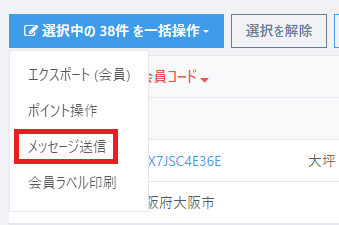 個別で送信を行う場合は会員コードをクリックし、会員詳細画面から「メッセージ送信」を選択します。