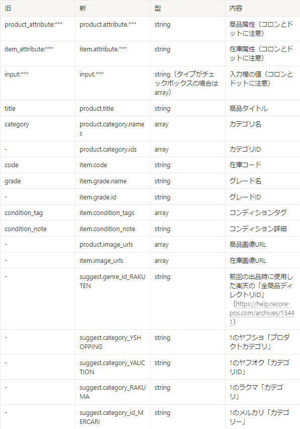 今回のリリースにより、EC出品の際に利用できるプレースホルダーを変更いたします。