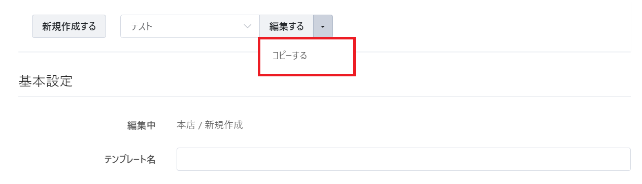 なお、コピーしたテンプレートの名称は「コピー – コピー元のテンプレート名」となりますので適宜名称をご変更ください。