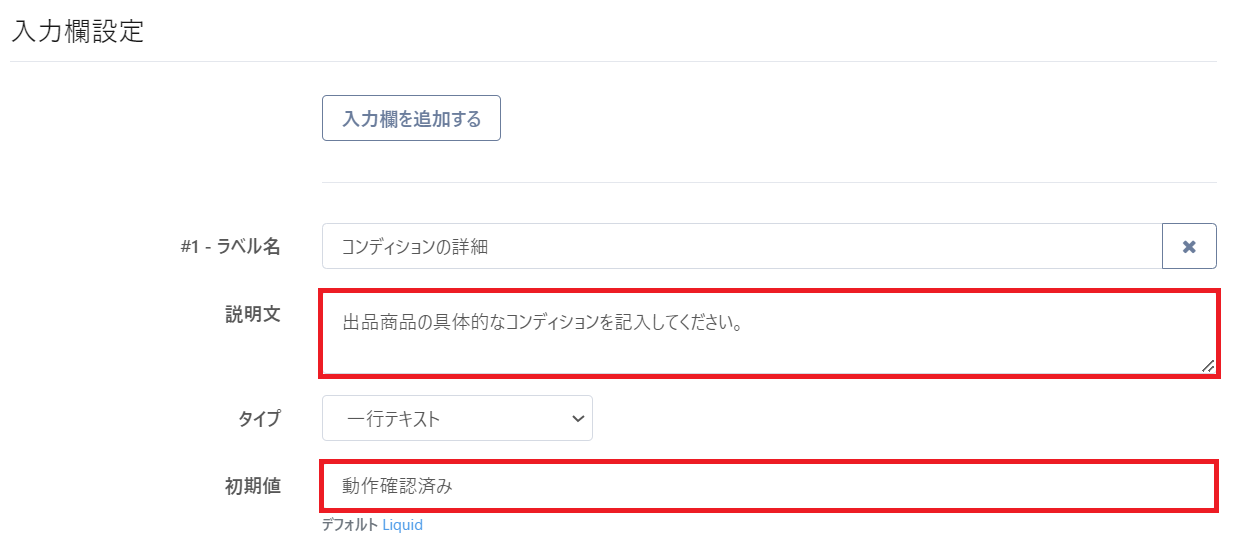 今回のリリースにより、EC出品テンプレートの各項目にLiquid入力ができる機能を追加いたします。