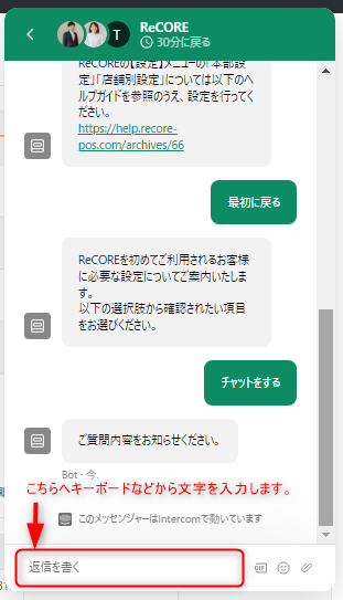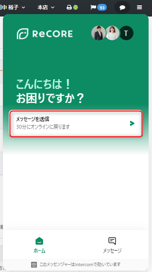 ①ReCOREの画面右上にある吹き出しアイコンをクリック