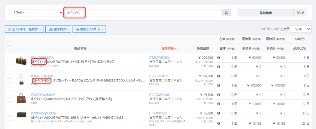 ※「Louis Vuitton」という商品名に対してはヒットしませんのでご注意ください