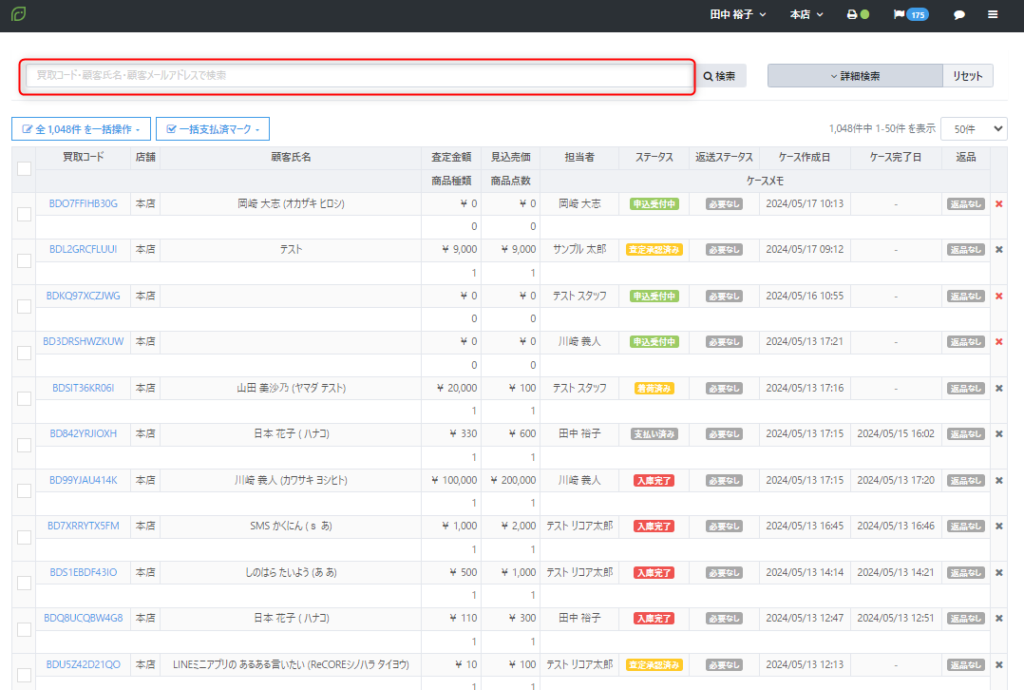 今回のリリースにより、【宅配買取>ケースリスト】にて顧客のメールアドレスを検索できる機能を追加いたしました。