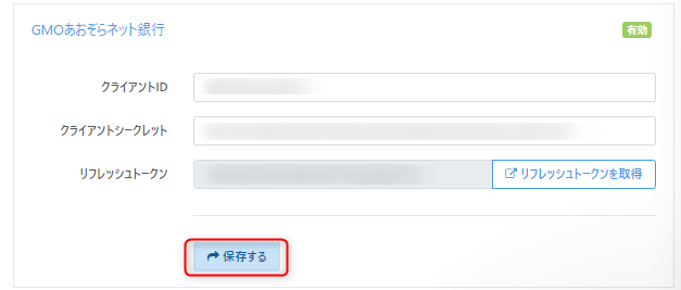 各項目の入力と反映後、【保存する】をクリックして設定内容が正しければ連携が『有効』になります。