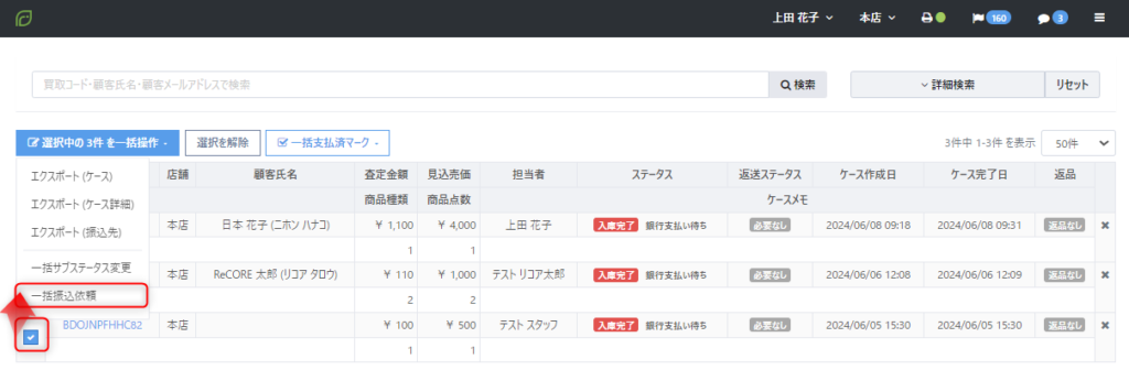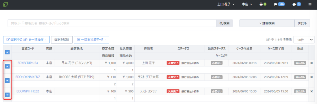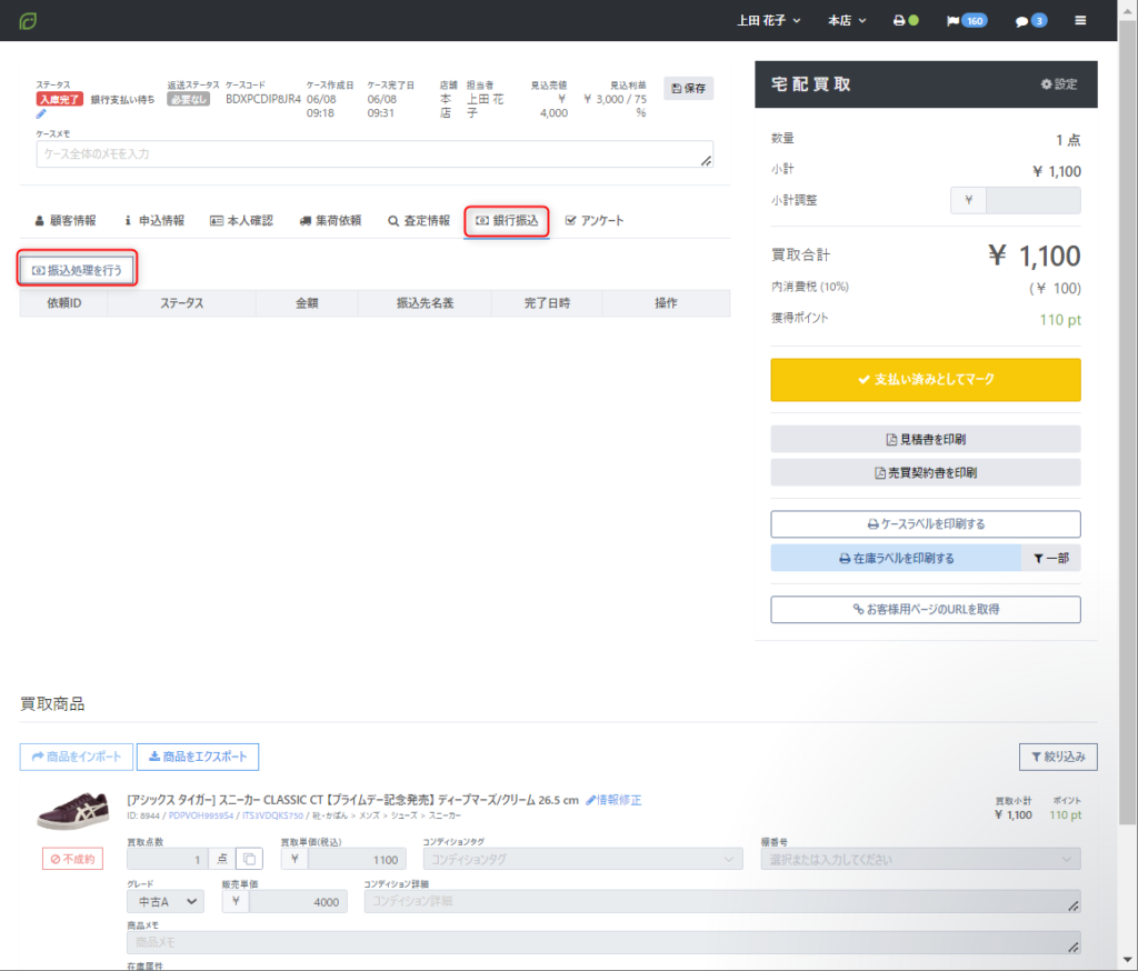 これにより、商品の査定・仕入から査定金額・仕入金額の支払い依頼までをケース内で完結することができ、店舗スタッフや経理担当者より送金手続きを行う手間を省くことが可能となります。