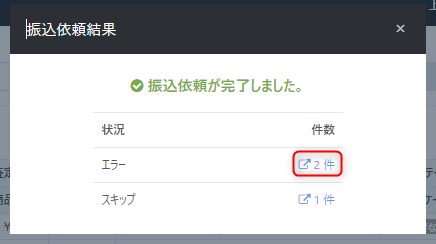 エラー:振込依頼の内容に不備があり依頼されていない件数