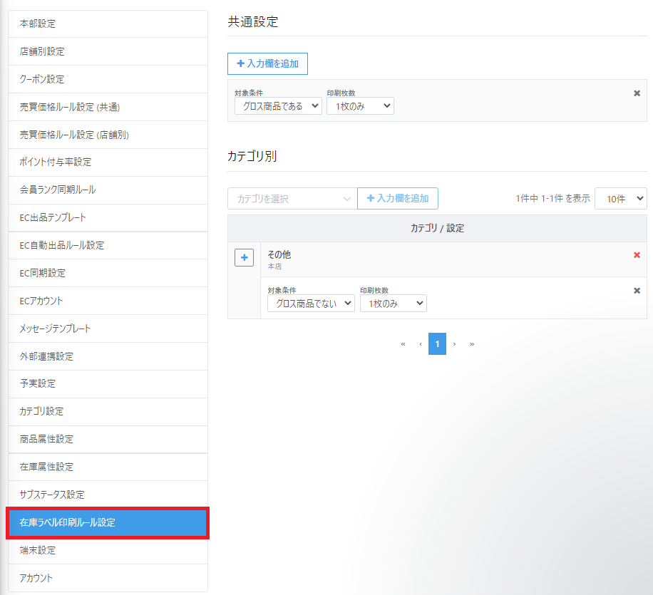 こちらの設定により、グロス管理商品を買い取る場合、1枚だけラベル用紙を印刷することも可能になりますので、不要な在庫ラベルの印刷を行わないようにすることができます。