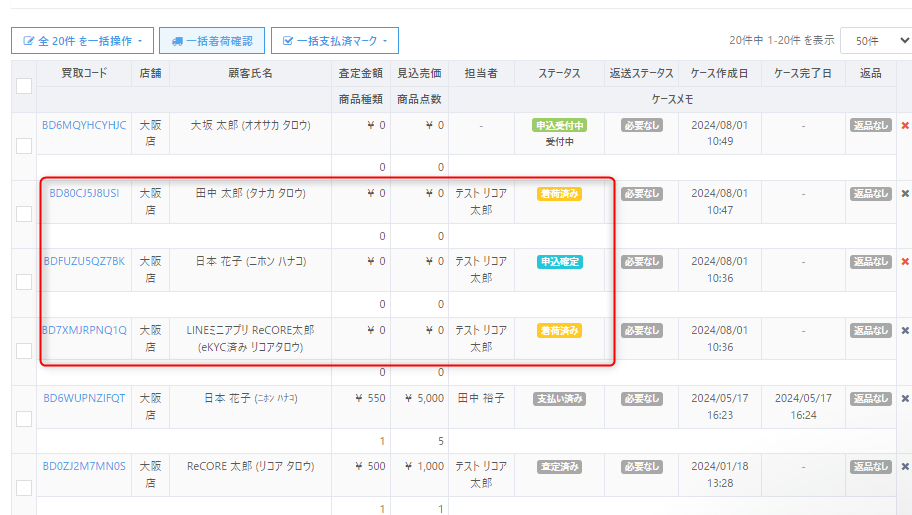 これまでは宅配買取ケースにて、ステータス「着荷済み」とするには1件ずつ、ケース詳細画面を開き「着荷済みとしてマーク」操作をしなければステータスの変更ができませんでした。