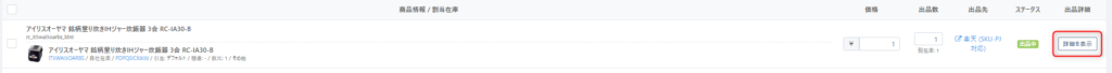 EC>出品リスト>該当の出品情報の【詳細を表示】をクリックし、該当の出品詳細画面を開く