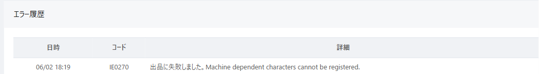 エラー『出品に失敗しました Request data is wrong format』『Machine dependent characters cannot be registered.』
