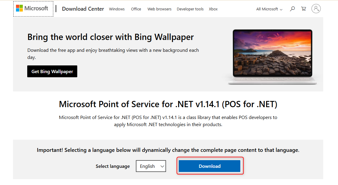 「Microsoft POS for.NET」画面の【Next】ボタンをクリックします。