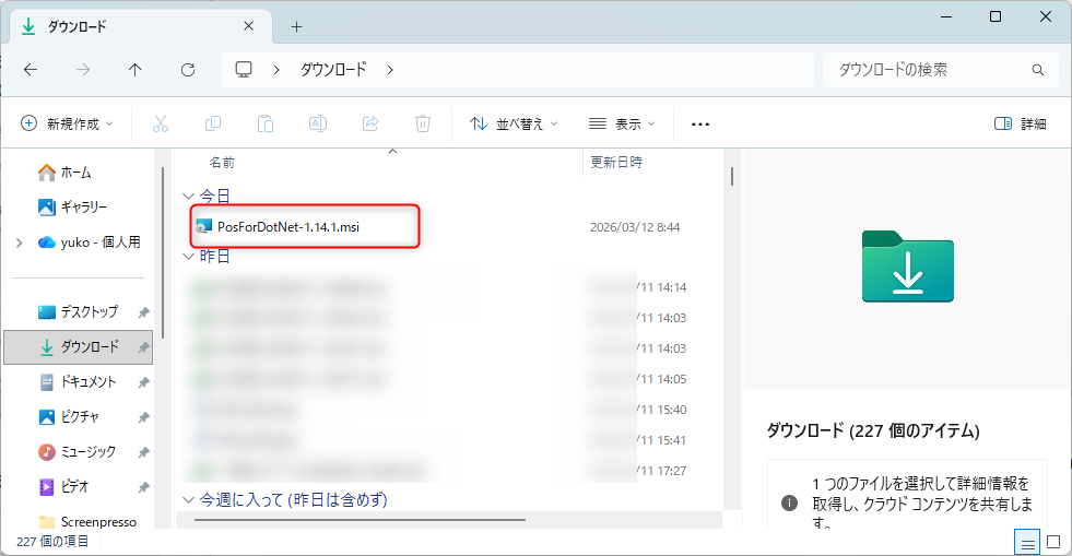 ダウンロードしたインストーラー【PosForDotNet.msi】をクリックして、実行します。