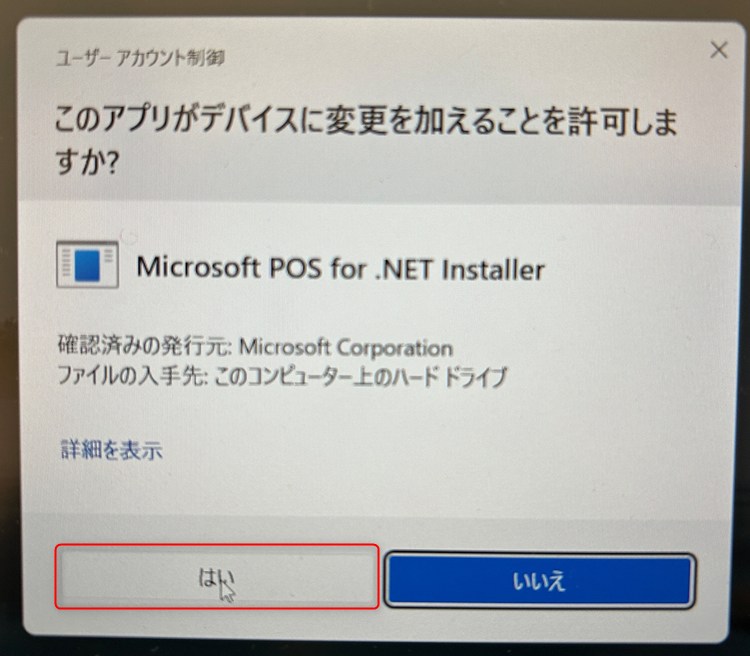 表示されたメッセージ【このアプリがデバイスに加えることを許可しますか】というメッセージには、【はい】をクリックします。
