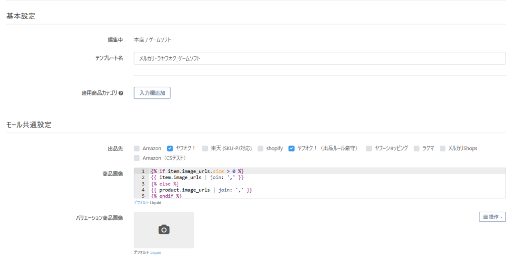 ・追加された出品先のECテンプレート部分の内容を作成する