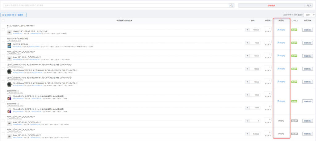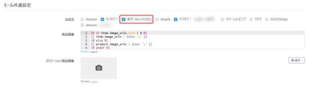例)出品先【Shopify】を選択した場合