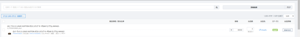 ・【出品先】:既存の出品EC名を指定 ・【ステータス】:『出品中』
