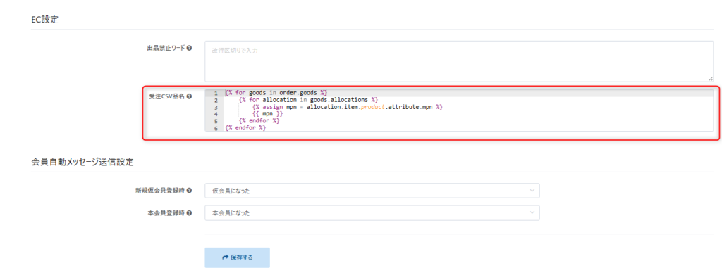 設定後は必ずページ最下部の【保存する】をクリックして保存
