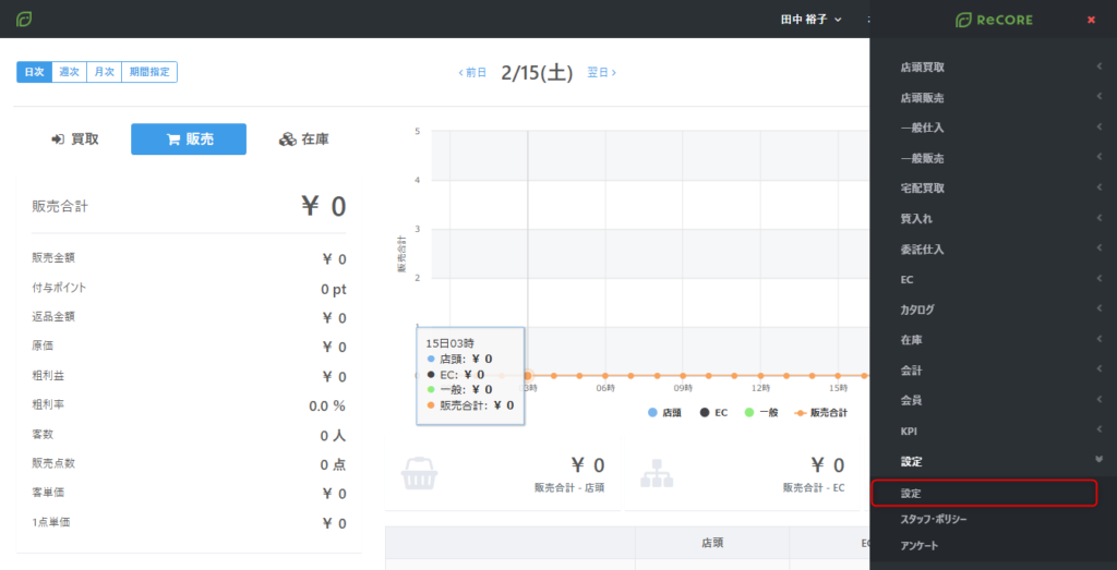 【設定】メニューの【設定】をクリックする