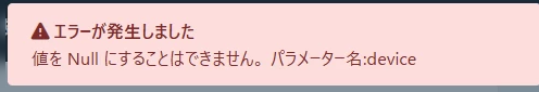 レシートプリンターのテスト印刷エラー「値をNullにすることはできません。パラメーター名: device」の対処方法