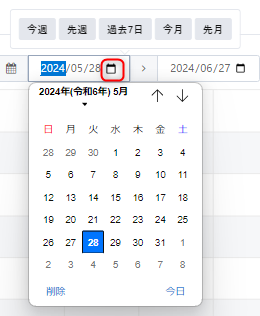 ・カレンダーマークをクリックすると、詳細なカレンダーより期間指定が可能