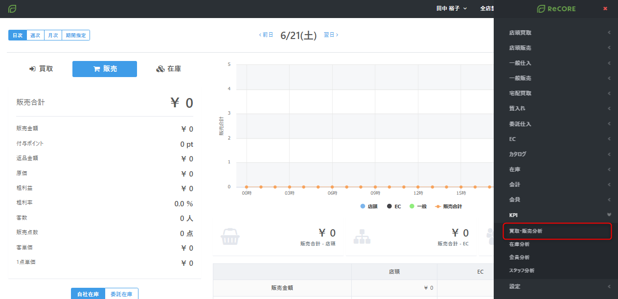 【KPI】メニューの【買取・販売分析】をクリックし、確認したい項目へ移動します。
