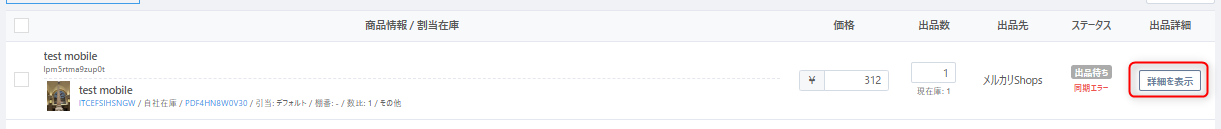 メルカリ出品操作後に【出品リスト】画面で出品ステータス『同期エラー』と表示され、出品の詳細画面の「エラー履歴」に以下のエラーが表示された場合の原因と対応方法を解説します。