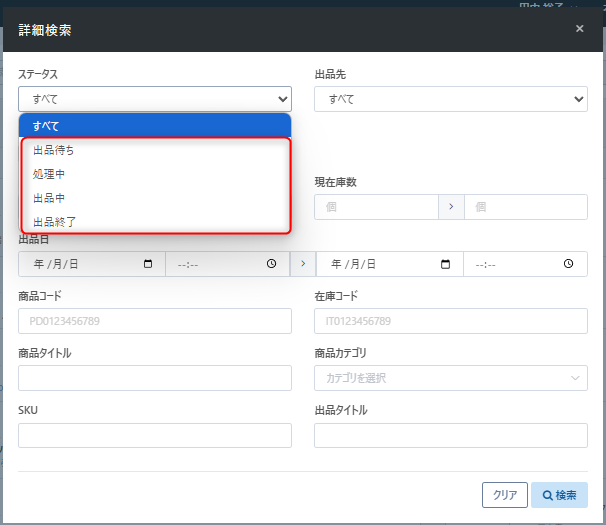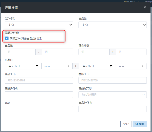 【詳細検索】より『同期エラーがある出品のみ表示』機能の追加