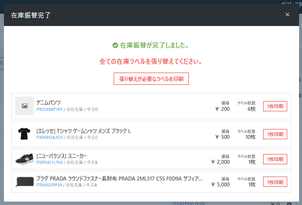 複数の在庫をそれぞれ異なる商品(カタログ)に変更