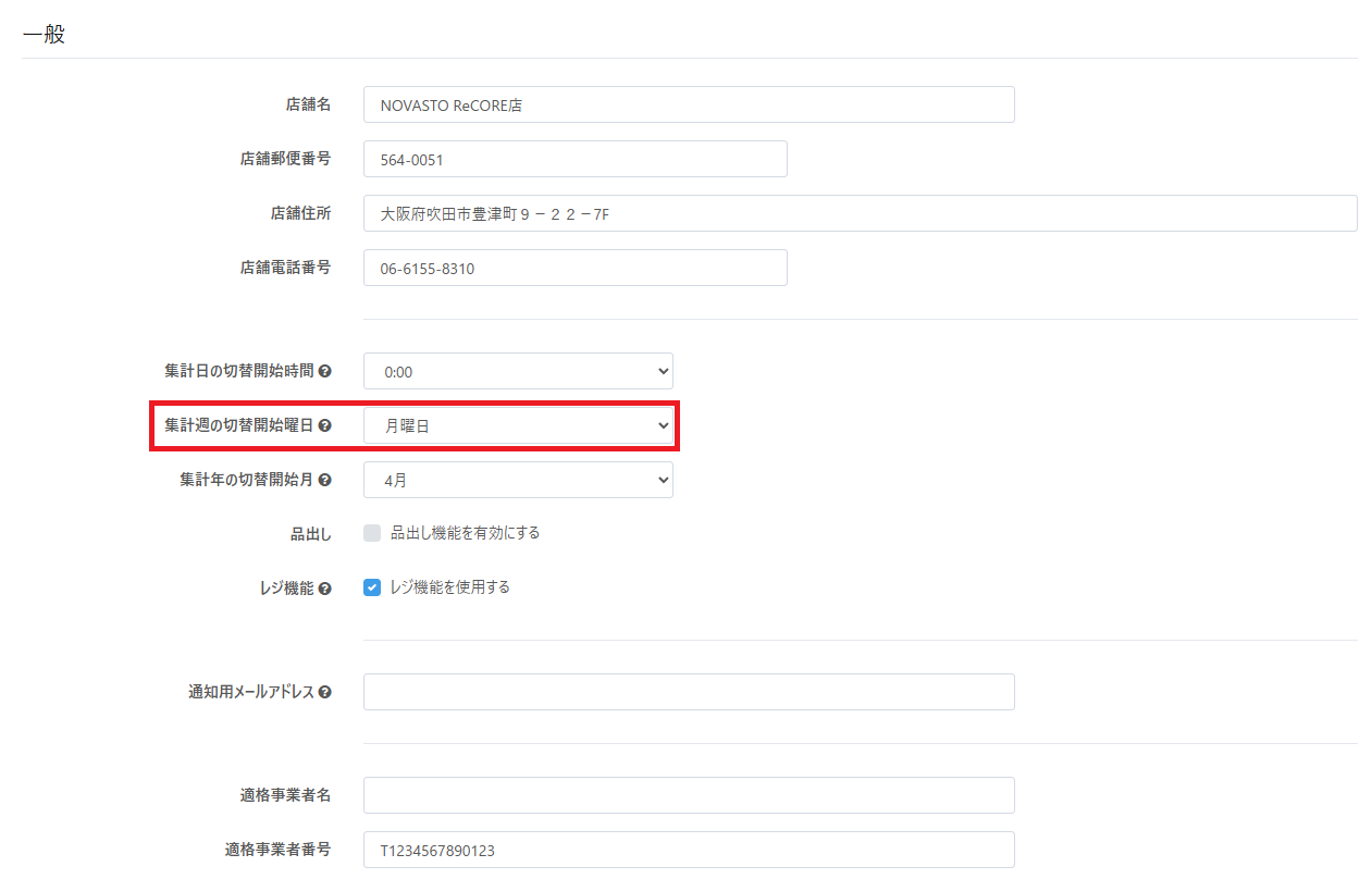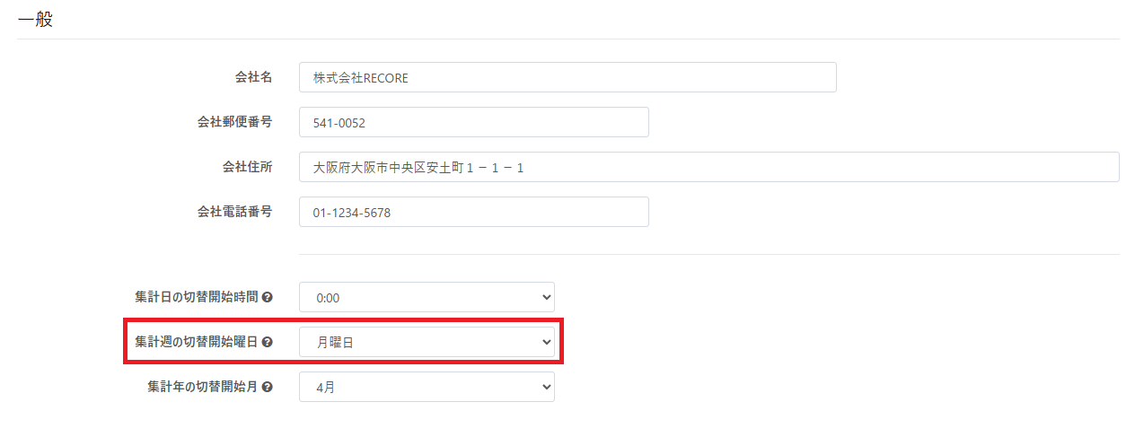 ダッシュボード、経理レポートの集計開始曜日を指定できる機能の追加