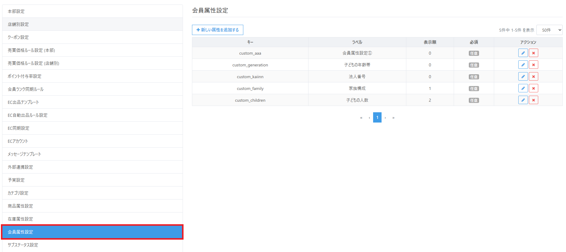 今回のリリースにより、【設定】メニューに対して【会員属性設定】を追加いたします。