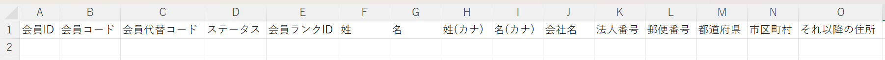 一方で、会員情報の更新をされたい場合は、前段でご案内いたしました⑥のファイルのカラムを編集する際、「会員ID」もしくは「会員コード」の入力が必須となります。