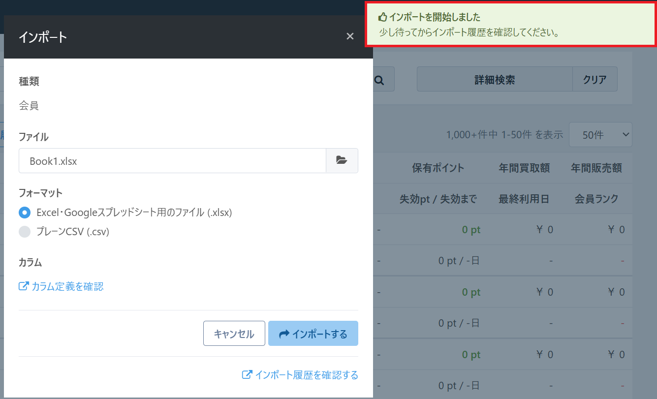 これにより、CSVまたはExcelファイルを使用し、会員の新規作成、会員情報の一括更新することができるようになります。