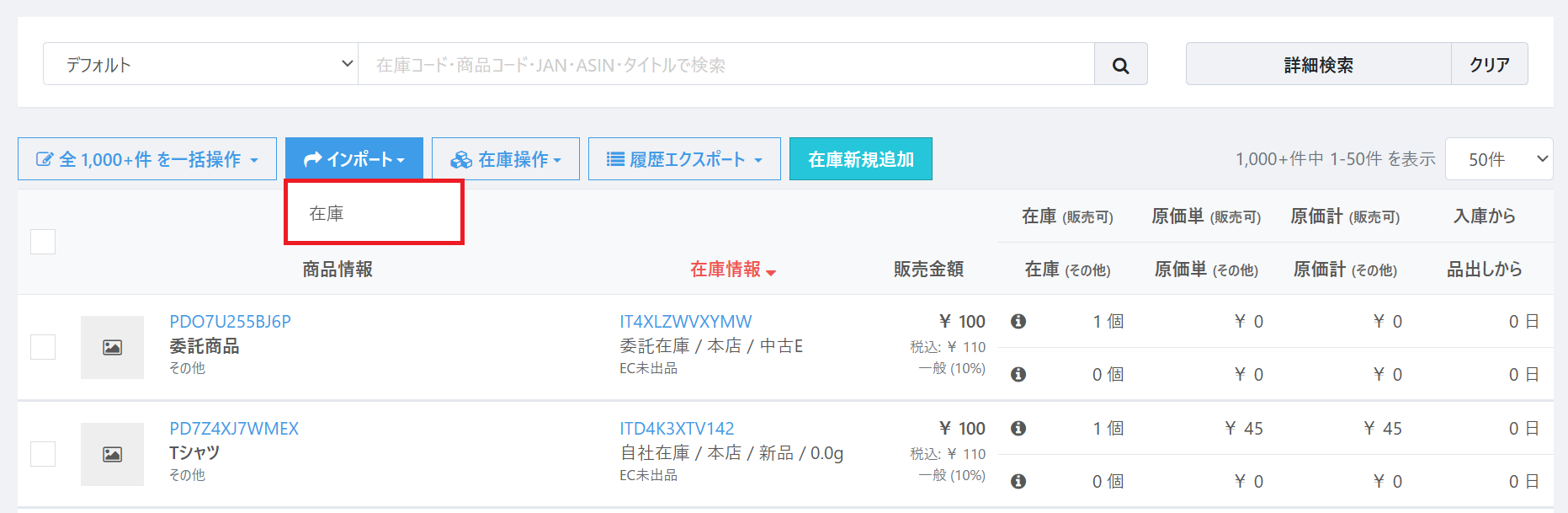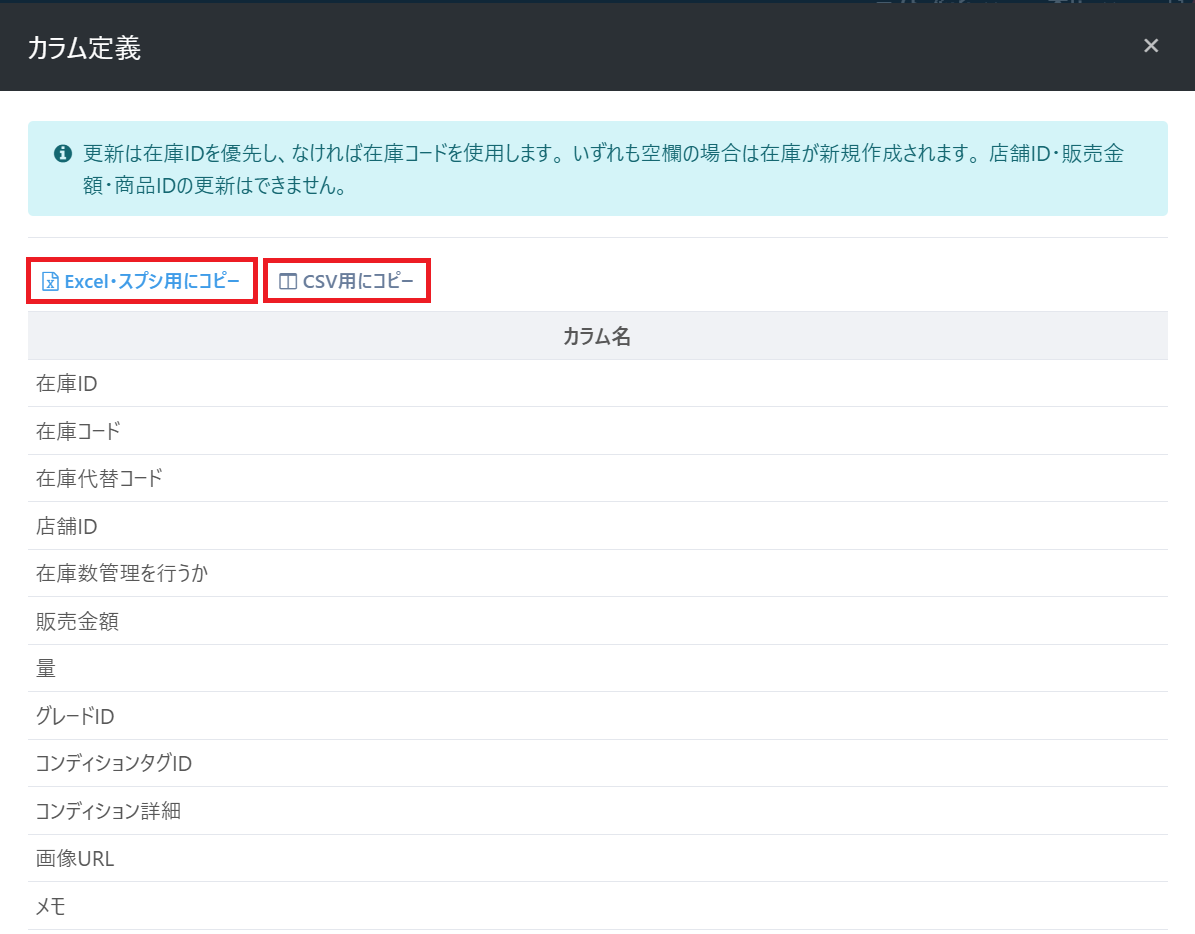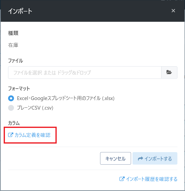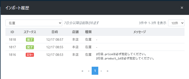 ・インポートを行う前に必ず現在の在庫データをエクスポートし、バックアップとして保存してください。