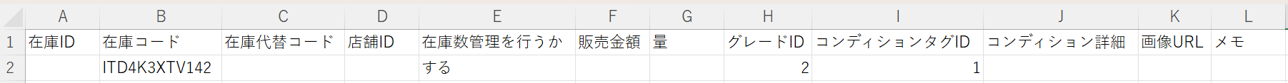 2.【在庫ID】が未入力、【在庫コード】が入力されている場合:該当する在庫コードの在庫情報が更新されます。