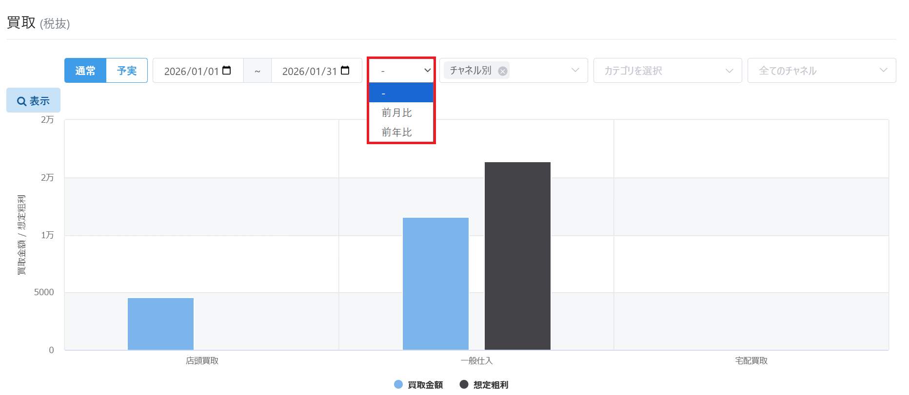 買取・販売分析に「前月比」「前年比」を表示する機能の追加