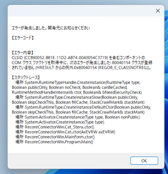 本ガイドではRECOREコネクターを起動する際に表示されるエラーに対する対応方法を解説します。