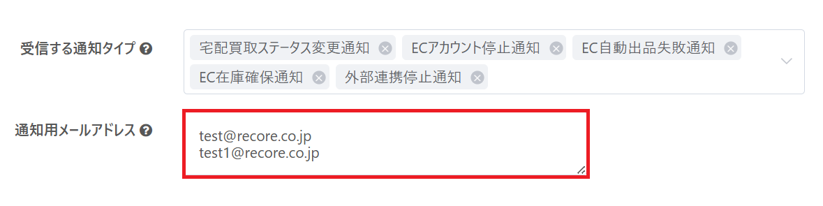 通知先のメールアドレスを複数設定できる機能を追加しました。
