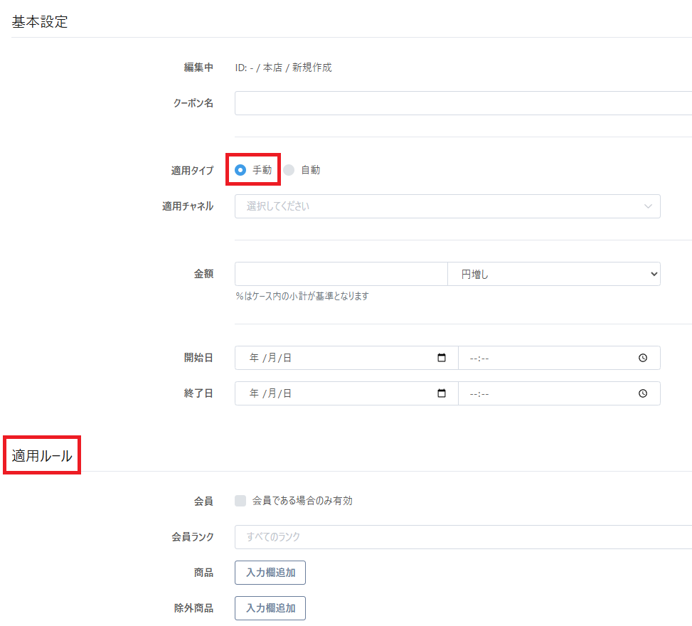 手動クーポンにも適用ルールの設定機能を追加しました。