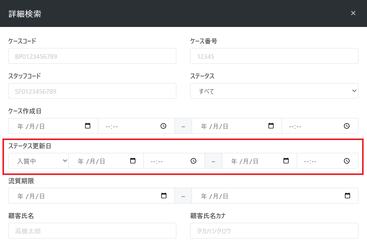 ⑦質入れケースのステータス更新日で検索できる機能の追加