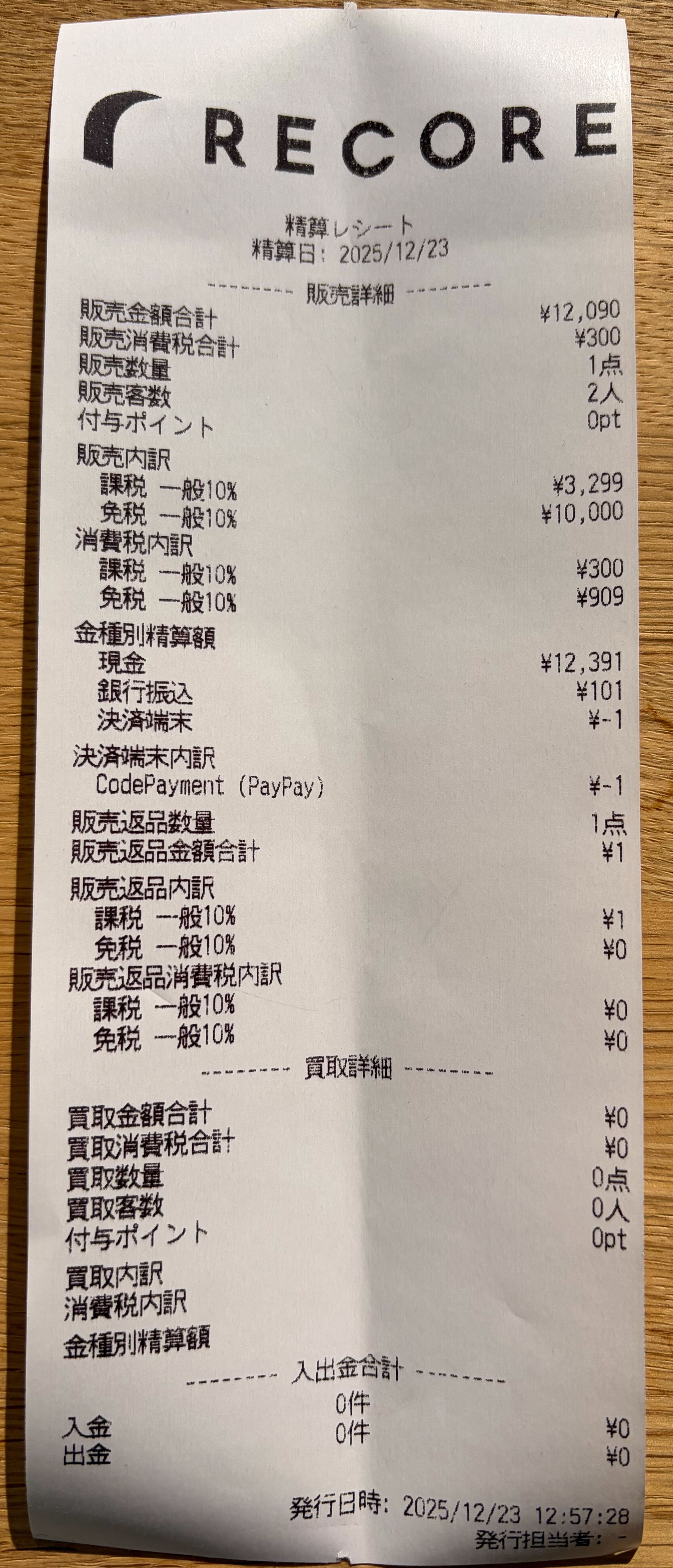・清算レシート