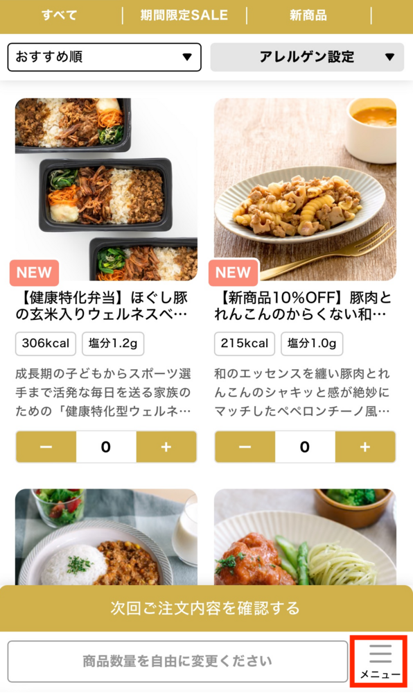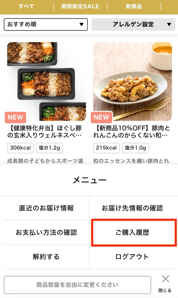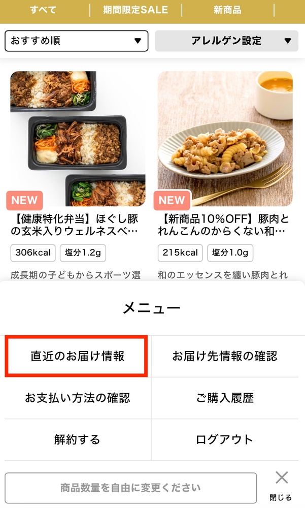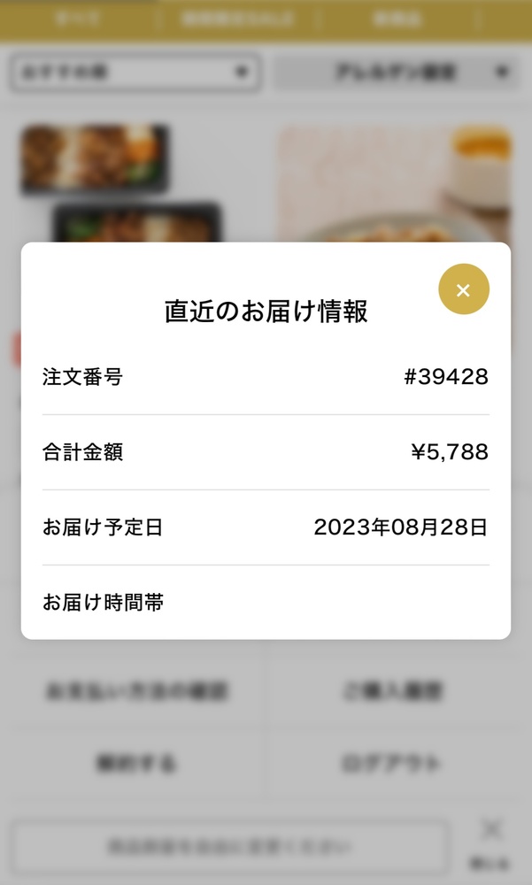 知りたい情報が、お届け情報(直近のお届け日時やご注文番号)と、注文メニューとかによって、選択メニューが異なります。