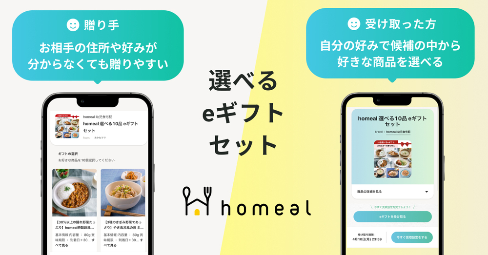 メッセージカードをご希望の場合は、homeal 選べる10品 eギフトセットをお選びください。